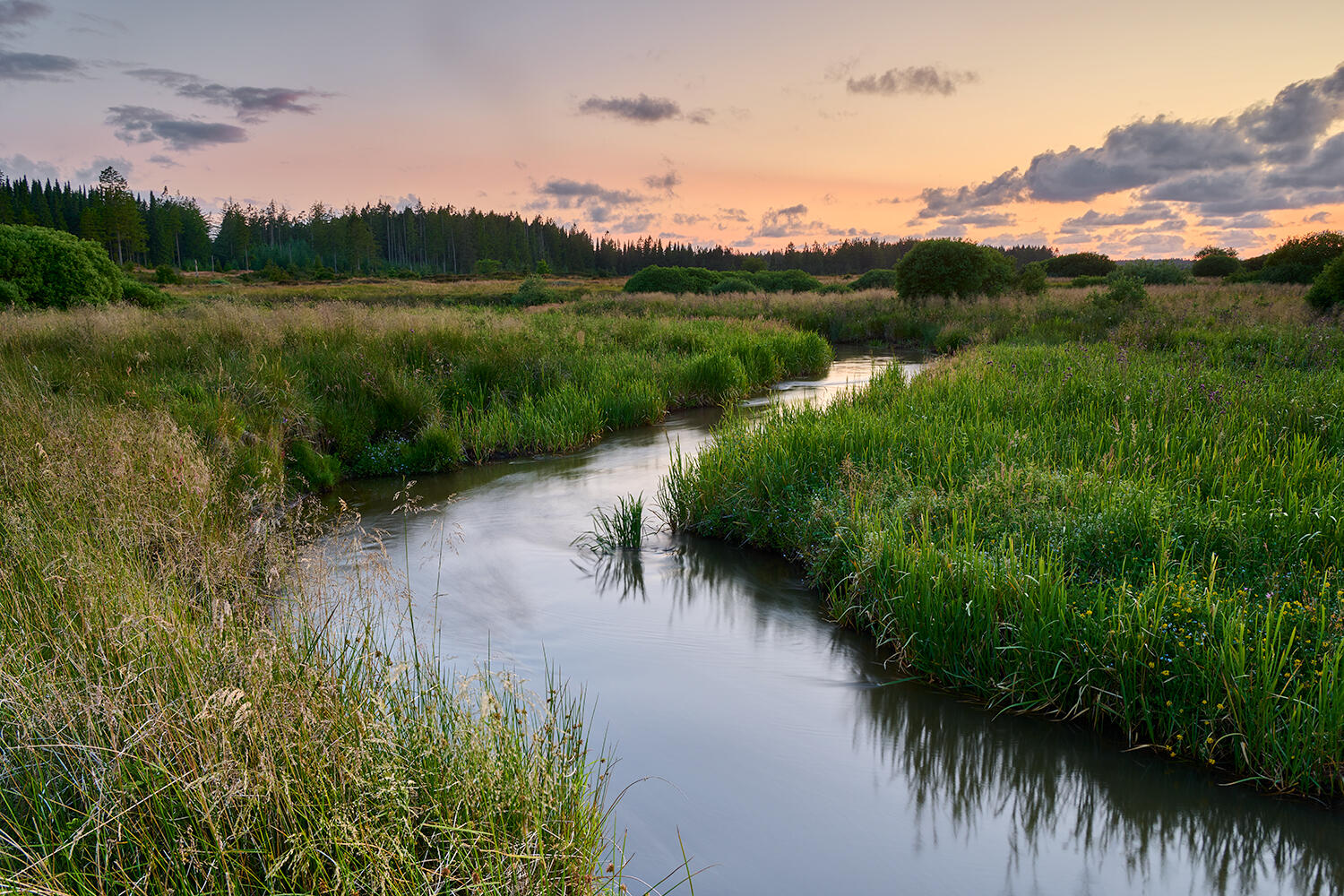 Lækkert solnedgangslys over Lilleå i Stråsø Naturnationalpark.